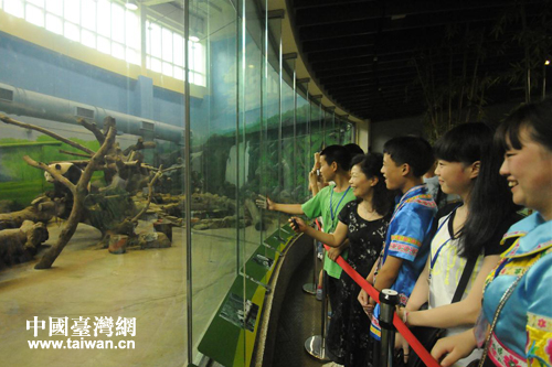 北川羌族學生在臺北木柵動物園看望大熊貓“團團”“圓圓”。(圖片來源:四川省臺辦)