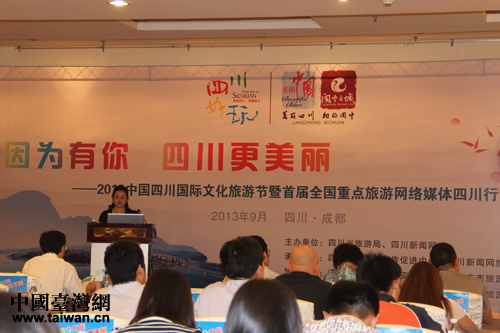 “因為有你,四川更美麗”首屆全國旅游重點網(wǎng)絡媒體四川行在成都啟動。(中國臺灣網(wǎng) 樊玉嬌 攝)