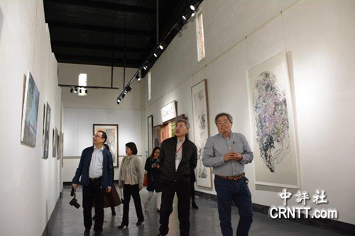 中評(píng)社四川走親采訪(fǎng)團(tuán)走訪(fǎng)成都濃園國(guó)際藝術(shù)村國(guó)際美術(shù)館。(中評(píng)社 趙家麟攝)