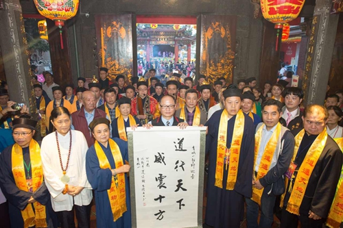 中國臺灣網(wǎng)12月6日綿陽訊 11月19日至30日,由四川省海峽兩岸交流促進會、四川省民族宗教委、四川省道教協(xié)會與臺灣高雄道德院聯(lián)合舉辦的“道行天下·青城山祖天師巡臺祈!被顒釉谂_隆重舉行。成都青羊?qū)m供奉的道教至高尊神——太上老君、青城山祖天師、江油金光洞中壇元帥——三太子哪吒神像赴臺,在島內(nèi)全境巡游。江油陳塘關、乾元山金光洞、翠屏山哪吒道觀負責人等一行8人護駕哪吒神像赴臺巡游,開展民俗文化交流活動。