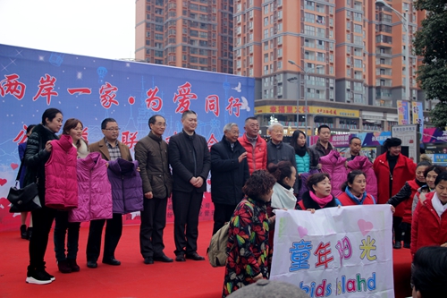 中國臺灣網(wǎng)12月30日綿陽訊 12月24日,綿陽大潤發(fā)超市門前的長虹國際廣場上人頭攢動,熱鬧非凡,由綿陽市臺辦指導(dǎo),綿陽市臺商協(xié)會主辦,綿陽市臺胞臺屬聯(lián)誼會、微愛陽光義工聯(lián)兒童希望基金會協(xié)辦的“兩岸一家·為愛同行”主題公益聯(lián)歡活動在此舉行;顒訁⑴c者近百人,觀看民眾達(dá)千人。