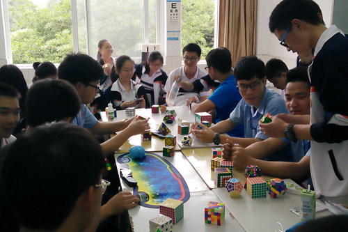 和結(jié)對伙伴一起,臺東高中的同學(xué)們走進樂山一中的教室,感受不一樣的課堂。隨后,大家又來到運動場,跟著體育老師練起了中華武術(shù),體驗歡樂生動的陽光體育課。下午,大家還來到社團活動教室,航模社、攝影社、魔方社、DIY工坊、實驗化學(xué)社、印色荼章、模擬聯(lián)合國……豐富多彩的社團生活,讓臺東高中的同學(xué)們樂在其中。