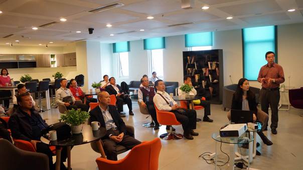 德陽市臺辦副主任謝錦輝向參訪團(tuán)介紹海峽兩岸青年創(chuàng)業(yè)園發(fā)展情況。(圖片來源:德陽市臺辦)