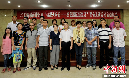 8月8日,2013海峽兩岸記者“錦繡天府行——感受藏區(qū)新生活”聯(lián)合采訪活動(dòng)在成都啟動(dòng)。圖為聯(lián)合采訪活動(dòng)啟動(dòng)儀式。安源 攝