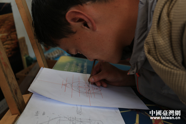 學(xué)習(xí)唐卡繪畫的學(xué)生。(中國臺灣網(wǎng) 李寧 攝)