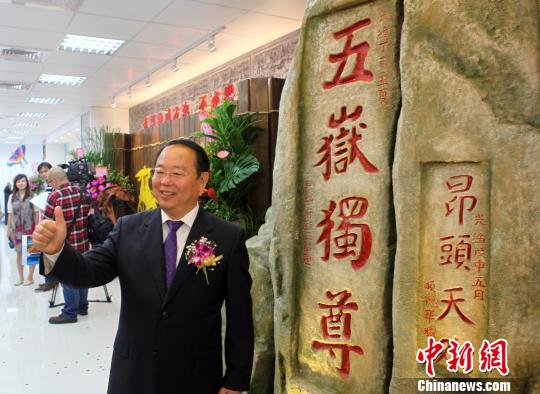 10月28日,“好客山東臺灣旅游營銷中心”28日在臺北開幕。圖為山東省旅游局局長于沖在中心推介泰山游。