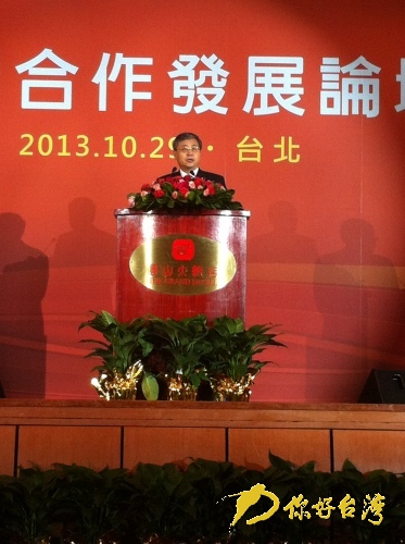 你好臺(tái)灣網(wǎng)臺(tái)北10月29日消息 (記者 樂(lè)艷艷 王坤)2013山東周——兩岸合作發(fā)展論壇今天上午9時(shí)30分在臺(tái)北舉行。山東省省長(zhǎng)郭樹(shù)清率山東省經(jīng)濟(jì)文化交流團(tuán)及各市分團(tuán)成員參會(huì),臺(tái)灣政界、經(jīng)濟(jì)界知名人士也參加了今天的論壇。