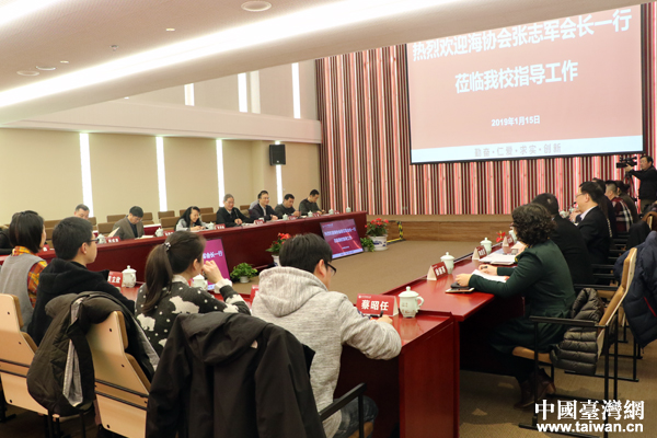 1月16日,全國人大常委會委員、海峽兩岸關(guān)系協(xié)會會長張志軍在杭州與臺商代表及浙江大學(xué)的臺籍師生座談。(中國臺灣網(wǎng) 王怡然 攝)