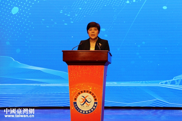 山東省副省長任愛榮在第24屆魯臺經(jīng)貿(mào)洽談會開幕式上致辭。(中國臺灣網(wǎng) 趙苗青 攝)