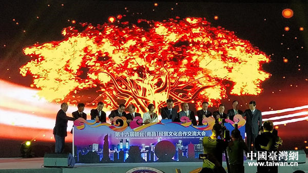 兩岸領(lǐng)導(dǎo)嘉賓共同啟動大會開幕儀式。(中國臺灣網(wǎng) 陳文韜 攝)