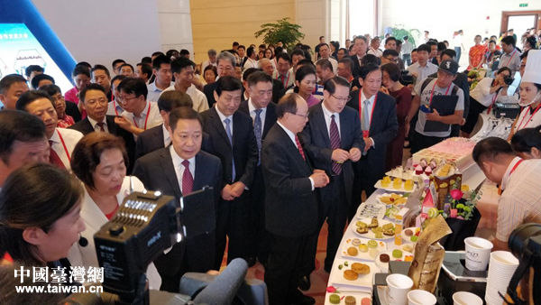 開幕式后,兩岸領(lǐng)導(dǎo)嘉賓參觀江西臺資企業(yè)產(chǎn)品展覽。(中國臺灣網(wǎng) 陳文韜 攝)