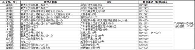 廣州市辦理受理點(diǎn)及聯(lián)系方式(如下圖)