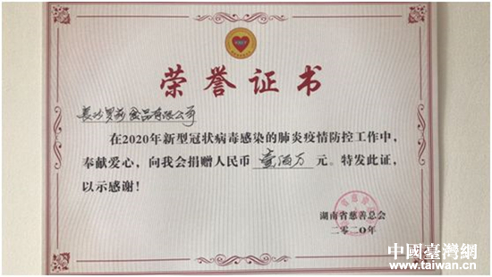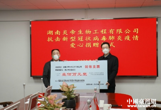 2月4日 湖南炎帝生物工程有限公司向株洲市慈善總會捐贈100萬元 直接用于武漢防疫一線。 (中國臺灣網(wǎng) 發(fā))