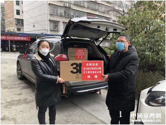 1月31日,懷化市臺企臺胞向一線工作人員捐獻(xiàn)口罩。 (中國臺灣網(wǎng) 發(fā))