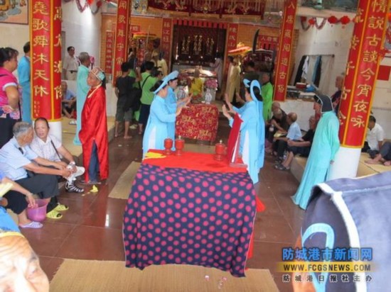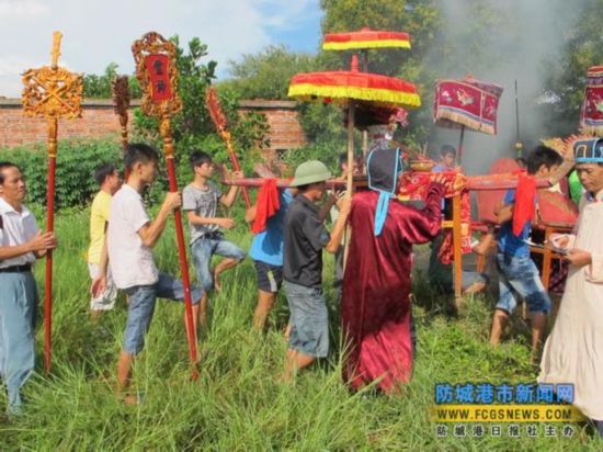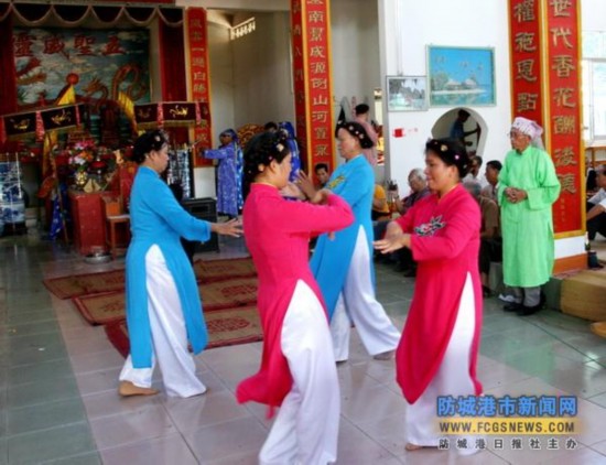 哈節(jié)除了歌舞娛樂外,還依順序舉行“迎神”、“祭神”、“送神”等儀式!坝瘛钡娜藗兇蛑_傘,抬著神案,于鼓樂聲中到大海邊把“鎮(zhèn)海大王”等靈神迎接回哈亭正殿就座,然后由德高望重的人主持,率眾人以“三牲五禮”敬獻于諸神及歷代先祖面前,祈求他們保護全村平安,各戶興旺。直到哈節(jié)結(jié)束,才再次打傘抬案,一路香燭相伴,把諸神送歸天界。京族人的宗教觀念大都與海有關(guān),寄托著他們對大海的敬畏及追求。(盧欣)