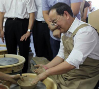 鹿心社向陶瓷藝人請教“拉坯”技術