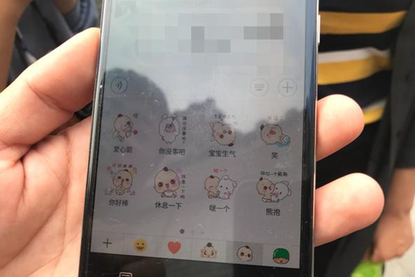 馬路遙向記者展示“小七”微信表情包