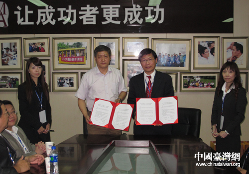 中國(guó)臺(tái)灣網(wǎng)9月17日天津消息 日前,以臺(tái)南長(zhǎng)榮大學(xué)高階管理碩士在職專班(EMBA)執(zhí)行長(zhǎng)曾信超為團(tuán)長(zhǎng)、臺(tái)灣中華中興菁英發(fā)展協(xié)會(huì)理事長(zhǎng)李崇智為顧問(wèn)的長(zhǎng)榮大學(xué)青年菁英參訪團(tuán)來(lái)津交流。與南開(kāi)大學(xué)EMBA中心簽署了學(xué)術(shù)合作交流備忘錄,雙方就教師互派、合作研究、學(xué)術(shù)期刊交換管理、共同舉辦學(xué)術(shù)會(huì)議等內(nèi)容達(dá)成了共識(shí)。