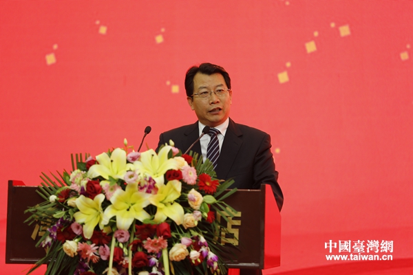 天津市委常委、市委統(tǒng)戰(zhàn)部部長冀國強(qiáng)致辭。(圖片來源:天津市臺辦)