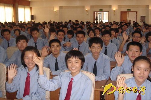山東省實驗中學(xué)學(xué)生在向臺灣同學(xué)問候(你好臺灣網(wǎng) 圖)