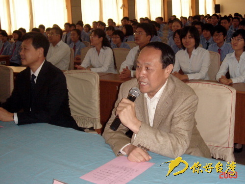 宋楚瑜先生、鄭永金縣長、曹居京副主任、李憲辰副局長、邱鏡淳主任委員先后在臺灣主會場致辭,濟南市教育局陳東生局長、北京市第八中學(xué)張鳳蘭校長分別在濟南、北京分會場致辭。高震東董事長致感謝辭。
