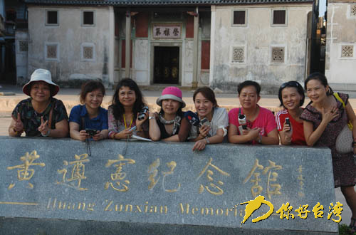 報(bào)道團(tuán)(部分成員)在黃遵憲故居前合影。(你好臺灣網(wǎng) 陳黎琴 攝)