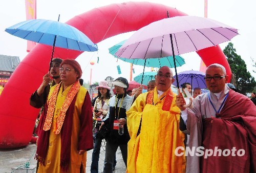 11月15日,臺(tái)灣中國(guó)佛教協(xié)會(huì)理事長(zhǎng)凈良長(zhǎng)老、中國(guó)佛教協(xié)會(huì)副會(huì)長(zhǎng)、少林寺方丈永信法師、臺(tái)灣茶禪文化協(xié)會(huì)理事長(zhǎng)、佛法山開山宗長(zhǎng)圣輪法師等兩岸高僧大德齊聚福建福鼎論禪茶。當(dāng)日,首屆中國(guó)·太姥山資國(guó)禪茶文化國(guó)際研討會(huì)在福鼎舉行。 中新社發(fā) 王東明 攝