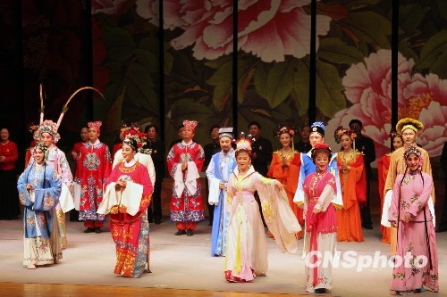 演出在全體演員合唱《天仙配》選段“夫妻雙雙把家還”中結(jié)束。步出演出廳的許多觀眾意猶未盡,連聲稱(chēng)贊演員“唱得好”、“演得好”。