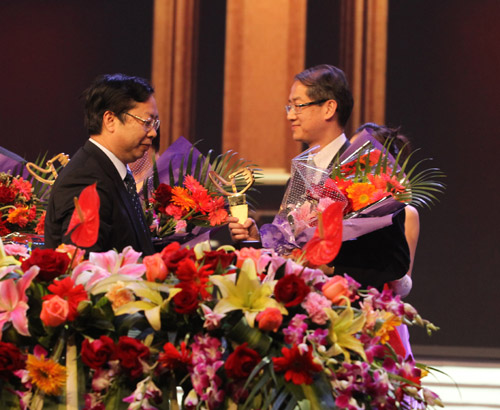 頂新康師傅文教基金會(huì)籌備處負(fù)責(zé)人滕鴻年先生代表頂新國(guó)際集團(tuán)接受表彰和獎(jiǎng)項(xiàng)。