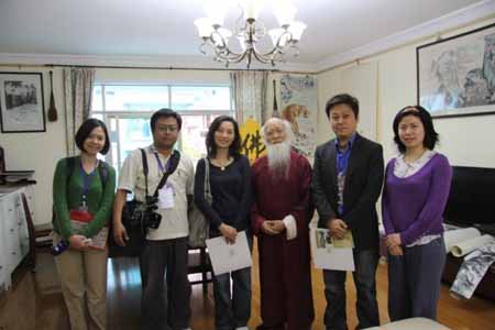 記者們驚訝于楊先生不僅作品傳承大千風(fēng)格,外形上白發(fā)髯垂,一口川音也與老師神似,猶如大千在世,他們希望楊先生有機會再次回到臺灣傳播大千藝術(shù)。(龔友國)