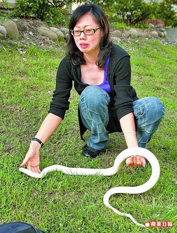 新竹縣男子李哲能,19年前開始培育白化臺灣南蛇當(dāng)寵物,常趁好天氣到文化中心草皮“遛蛇”,引來路人把玩,小朋友還要求父母買蛇回家當(dāng)寵物。