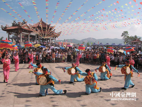 中國(guó)臺(tái)灣網(wǎng)7月16日福建漳浦消息 日前,臺(tái)灣臺(tái)北縣三重市市長(zhǎng)李乾龍率百名臺(tái)胞到福建漳浦赤嶺雨霽頂三界公祖廟朝拜,并進(jìn)行了浦臺(tái)兩岸三界公民俗文化交流活動(dòng)。