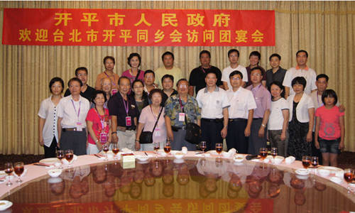 臺(tái)北開平同鄉(xiāng)會(huì)的到訪受到開平市的有關(guān)部門的熱烈歡迎,市人民政府在開平花園酒店設(shè)宴招待代表團(tuán)一行,市人大副主任黃旭征、市政協(xié)副主席、統(tǒng)戰(zhàn)部部長關(guān)位湛出席宴會(huì)。關(guān)位湛致詞歡迎,希望臺(tái)北同鄉(xiāng)會(huì)訪問團(tuán)將祖國大陸的變化情況帶回臺(tái)北,將臺(tái)資企業(yè)在開平的發(fā)展情況傳達(dá)回去,希望更多的鄉(xiāng)親多回鄉(xiāng)探親訪友、尋根問祖,聯(lián)絡(luò)鄉(xiāng)情及觀光游覽,增進(jìn)雙方的了解,促進(jìn)兩地的進(jìn)步和共同發(fā)展。(馮活源)