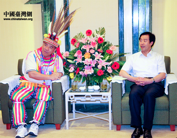 于革勝會(huì)見(jiàn)臺(tái)灣少數(shù)民族交流考察團(tuán)一行。(中國(guó)臺(tái)灣 陳佳慧 攝)