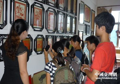 中國臺灣網(wǎng)7月29日孝感消息 日前,來自臺灣的五名小朋友到湖北孝感市雕花剪紙研究所參觀雕花剪紙工藝。臺灣小朋友們興致勃勃的參觀了剪紙工藝品展覽,對中華民間藝術(shù)的博大精深無比贊嘆。