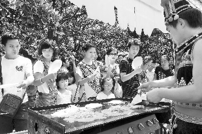 臺(tái)灣美食“蚵仔煎”小吃吸引眾多游客排隊(duì)品嘗。近日“二○一○貴陽(yáng)—臺(tái)北美食風(fēng)情節(jié)”開(kāi)幕。這是貴陽(yáng)市首次與臺(tái)灣旅游業(yè)界攜手共同舉辦的一次旅游、餐飲、娛樂(lè)盛會(huì),以“兩岸牽手、共饗鄉(xiāng)情”為主題,突出體現(xiàn)貴陽(yáng)、臺(tái)北兩地飲食文化氛圍、積極倡導(dǎo)健康飲食理念。追 影 攝