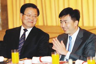 蔡武(左)率團(tuán)訪臺參加在臺北舉辦的兩岸文化論壇,盛治仁(右)2日晚設(shè)宴歡迎。(來源:臺灣《聯(lián)合報(bào)》)