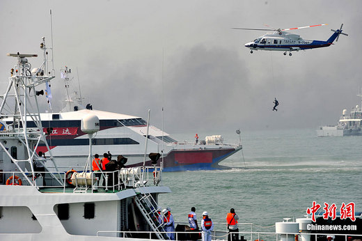 9月16日上午,2010年海峽兩岸海上聯(lián)合搜救演練在臺(tái)灣海峽的廈門、金門附近海域舉行。
