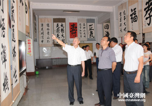 中國(guó)臺(tái)灣網(wǎng)9月27日北票消息 日前,為慶祝建國(guó)61周年,遼寧北票市舉辦“寰宇杯”陳大絡(luò)書(shū)法展。出自臺(tái)灣著名書(shū)法大師陳大絡(luò)之手的“江山一統(tǒng)”等書(shū)法作品充分體現(xiàn)出兩岸同根、同源,都是中華民族炎黃子孫的情懷。