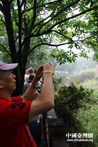 記者團(tuán)清晨首先抵達(dá)位于成都市北郊的大熊貓繁育研究基地,參觀了憨態(tài)可掬的熊貓們從睡夢(mèng)中醒來(lái)、活動(dòng)、進(jìn)食的全過程。這么多如此珍貴的熊貓齊聚同一個(gè)園區(qū),是許多臺(tái)灣記者從未見到過的“奇景”。一位臺(tái)灣記者表示,他走遍祖國(guó)大陸,在北京、天津、四川臥龍等地都見過大熊貓,今天加上成都,終于功德圓滿,一嘗夙愿。關(guān)于大陸贈(zèng)臺(tái)的“團(tuán)團(tuán)、圓圓”,記者們都表示,它們?cè)谂_(tái)灣生活得很好,非常受廣大民眾、尤其是小朋友們的歡迎。