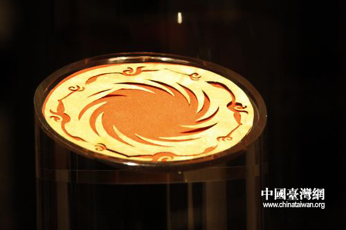 金沙遺址出土的“太陽神鳥”金飾,其精致美感令人嘆為觀止。(中國臺灣網(wǎng) 馬迪 攝)