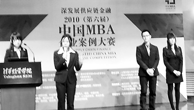 由兩岸10所大學參加的第六屆中國MBA企業(yè)案例總決賽,近日在清華大學舉行。此前,選手們經(jīng)過北方、華南、華東及臺灣4個賽區(qū)的激烈角逐,兩岸10所高校代表隊進入總決賽。圖為臺灣政治大學代表隊在總決賽中答辯。櫻子攝
