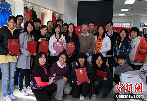 臺(tái)灣海洋大學(xué)新成立的國(guó)際事務(wù)處近日專為“大陸交換生”舉辦新年座談及歡送會(huì)。22位“大陸交換生”分別來(lái)自中國(guó)海洋大學(xué)、上海海洋大學(xué)、浙江海洋大學(xué),在臺(tái)灣海洋大學(xué)交換學(xué)習(xí)一學(xué)期或一學(xué)年,他們是在該校學(xué)習(xí)的第二批大陸交換生。國(guó)際事務(wù)處沈士新博士、處長(zhǎng),當(dāng)天為13位如期完成了學(xué)習(xí)的交換生頒發(fā)學(xué)習(xí)證書(shū)。中新社記者 關(guān)向東 攝