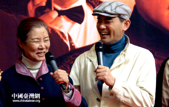 三十集電視劇《海峽往事》今天在京舉行首播新聞發(fā)布會,趙文瑄(右)與呂中在劇中再度扮演一對母子。(中國臺灣網(wǎng) 張弛 攝)