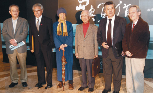 《他們在島嶼寫作》記錄6位文學(xué)大師身影,片中主角楊牧(左起)、鄭愁予、周夢蝶、余光中、林海音(已逝,由兒子夏祖焯代表)、王文興,昨天一同出席發(fā)布會(huì)。圖片來源:臺(tái)灣《聯(lián)合報(bào)》