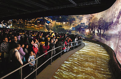 國務(wù)院臺辦發(fā)言人楊毅13日在發(fā)布會上證實,上海世博會中國館“鎮(zhèn)館之寶”之一 電子動態(tài)版《清明上河圖》近期有望赴臺展覽。