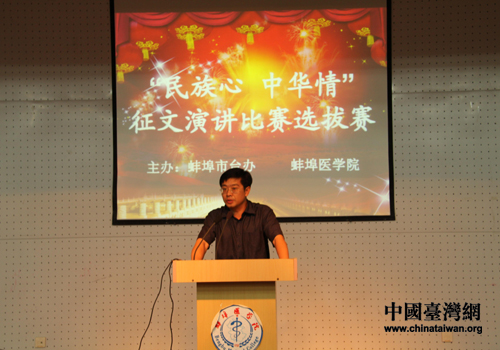 中國(guó)臺(tái)灣網(wǎng)7月1日蚌埠消息 6月27日下午,由安徽省蚌埠市臺(tái)辦與蚌埠醫(yī)學(xué)院團(tuán)委聯(lián)合主辦的“民族心 中華情”演講比賽選拔賽在蚌埠醫(yī)學(xué)院隆重舉行。