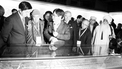 北京首都博物館于9日起至2012年2月19日,在臺灣世界宗教博物館舉辦“智慧華嚴——北京首都博物館佛教文物珍藏展”,展出102件國寶級珍藏精品。這是首都博物館第一次在臺展出眾多精彩的皇家佛教文物,其中1/3的參展文物是出土后首次公開亮相,展品包括漢傳文物45件,藏傳文物57件。當晚該館還與中華宗教文化交流協(xié)會及各界宗教團體一起,在臺北舉行了“心和平之夜”文藝晚會。(本報記者 王連偉攝影報道)