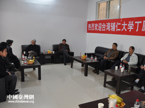 臺灣輔仁大學教授、博士生導師丁原植與上蔡縣地方史專家座談交流(圖片來源:駐馬店臺辦)