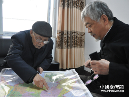 丁原植教授與尚景熙先生探討楚國疆界(圖片來源:駐馬店臺辦)